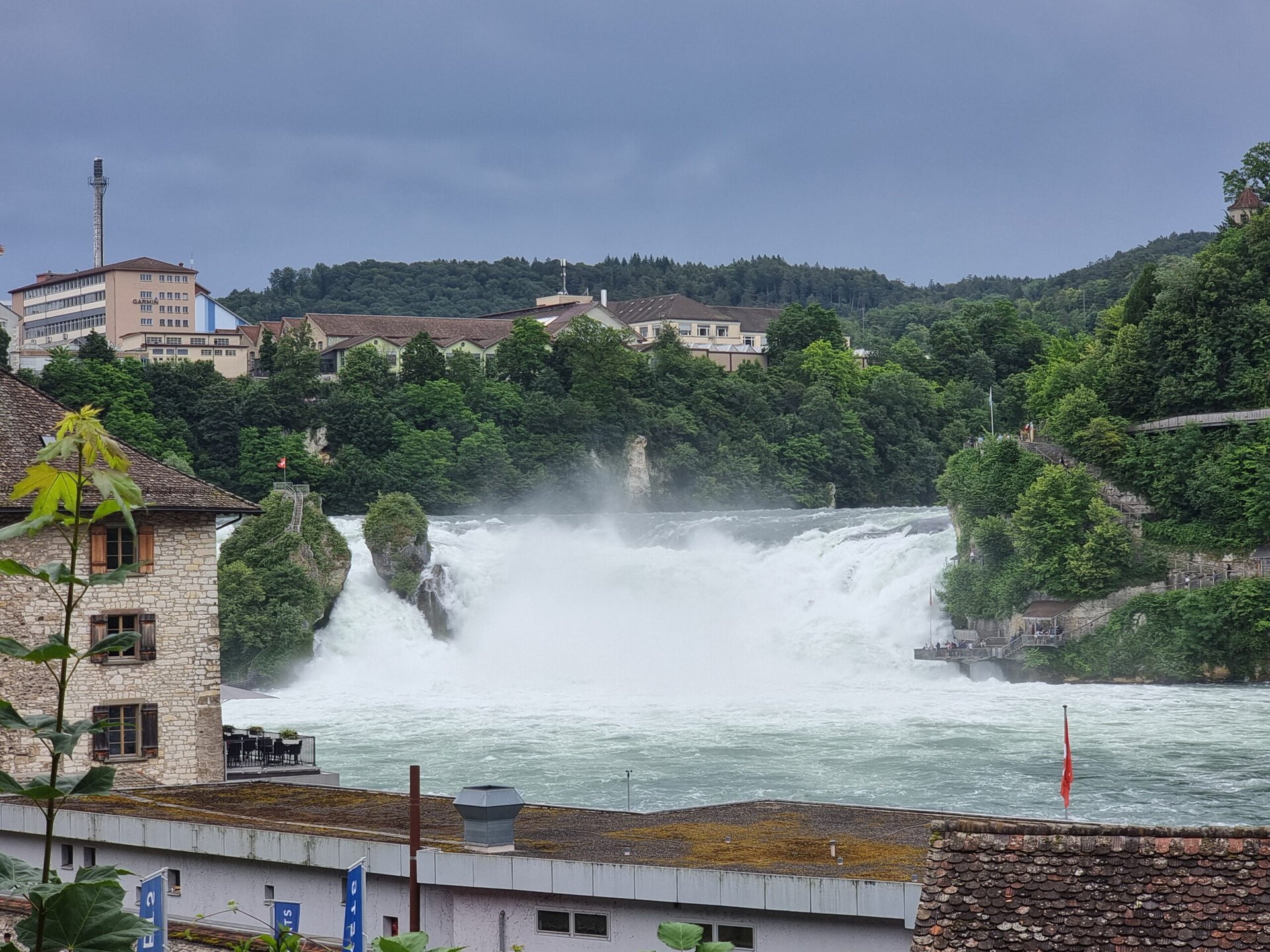בדרך עצרנו בעירה גרמנית Jestetten כמה קילומטרים לפני המפלים ואכלנו ארוחת צהרים. חניה בעזרת המלבן הכחול.